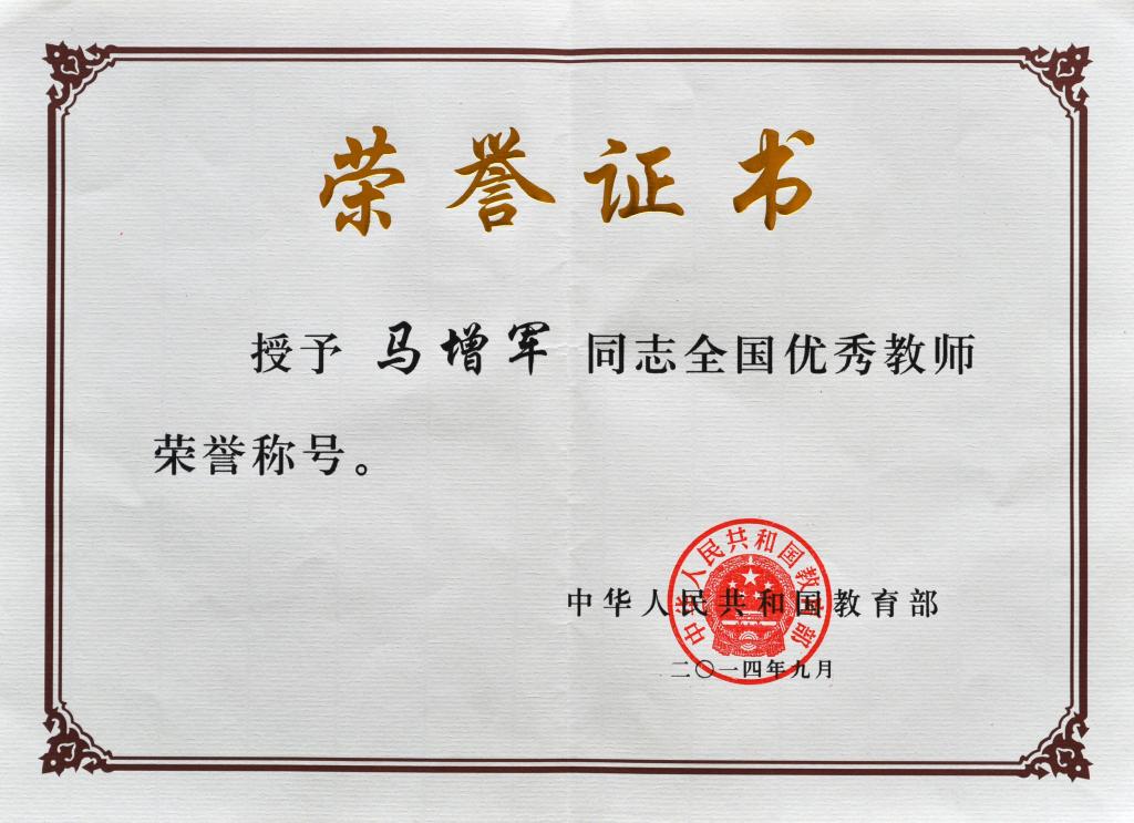 • 马增军教授荣获全国优秀教师...