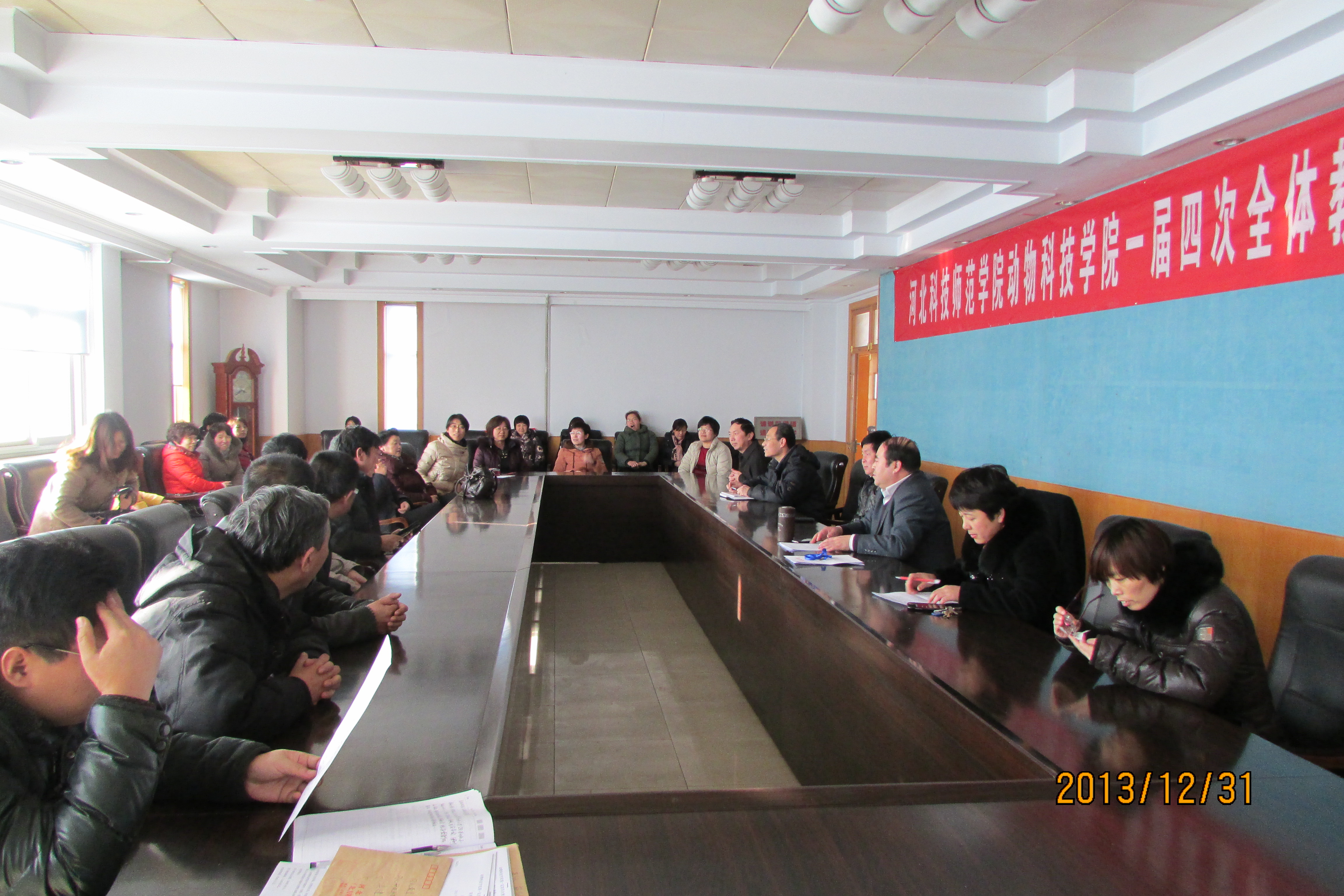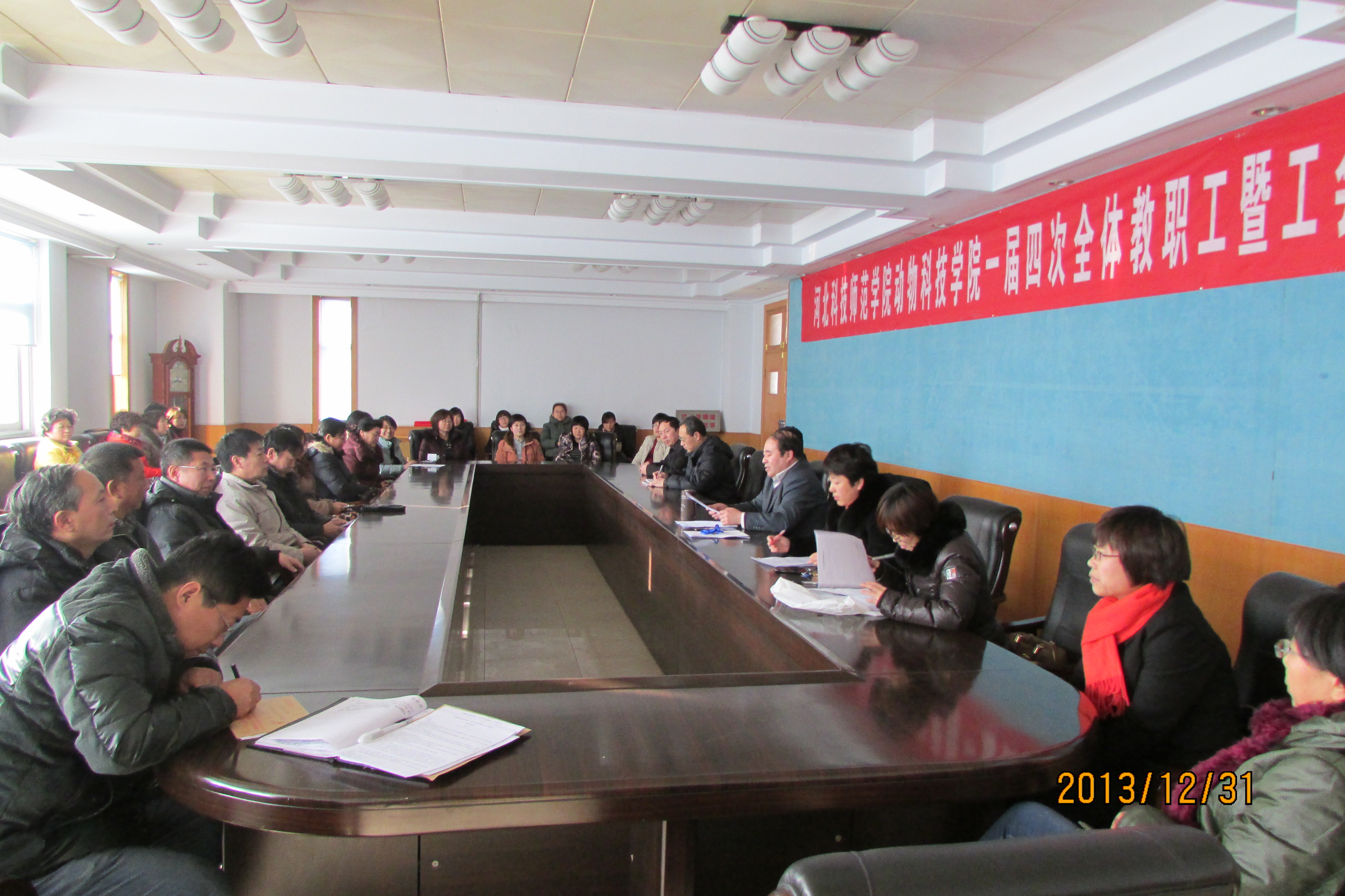 2013年12月31日下午,澳门网投官网在主楼三楼会议室举行澳门网投十大信誉平台第一届第四次全体教职工暨工会会员大会,参加本次大会的有党委常委、党委办公室、校长办公室主任李佩国,澳门网投十大信誉平台领导班子成员和全体教师。