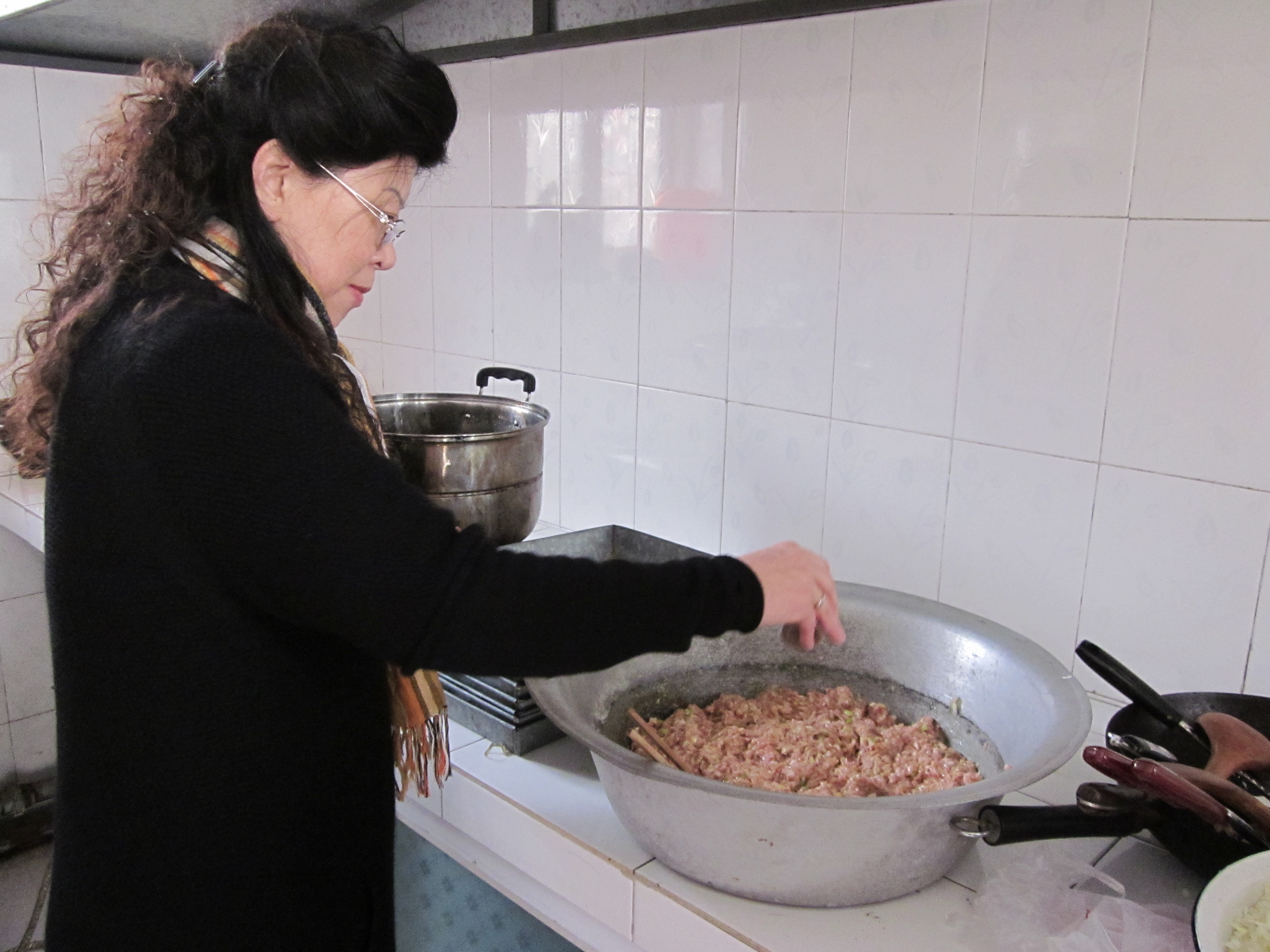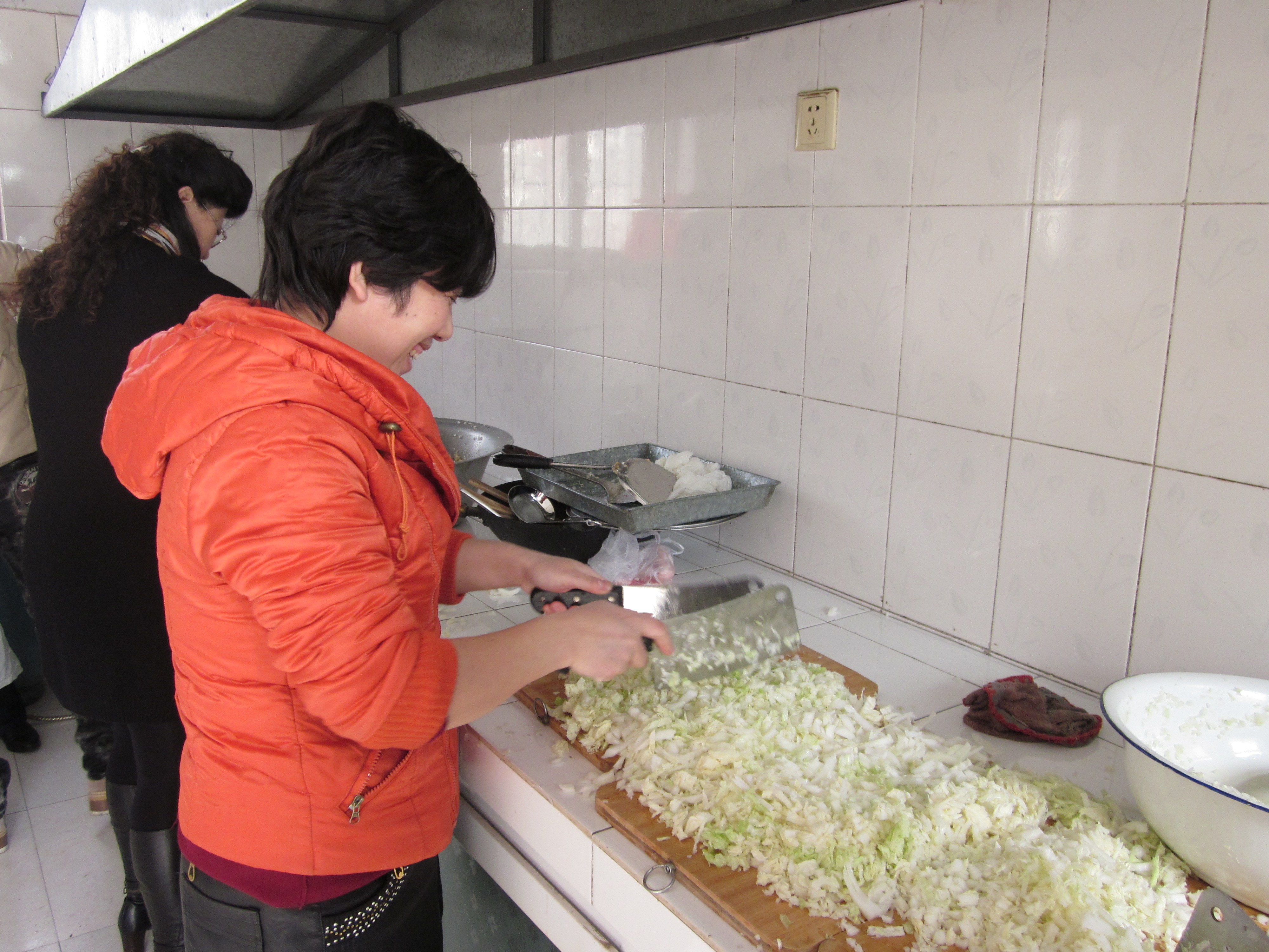 老师们正在剁白菜馅