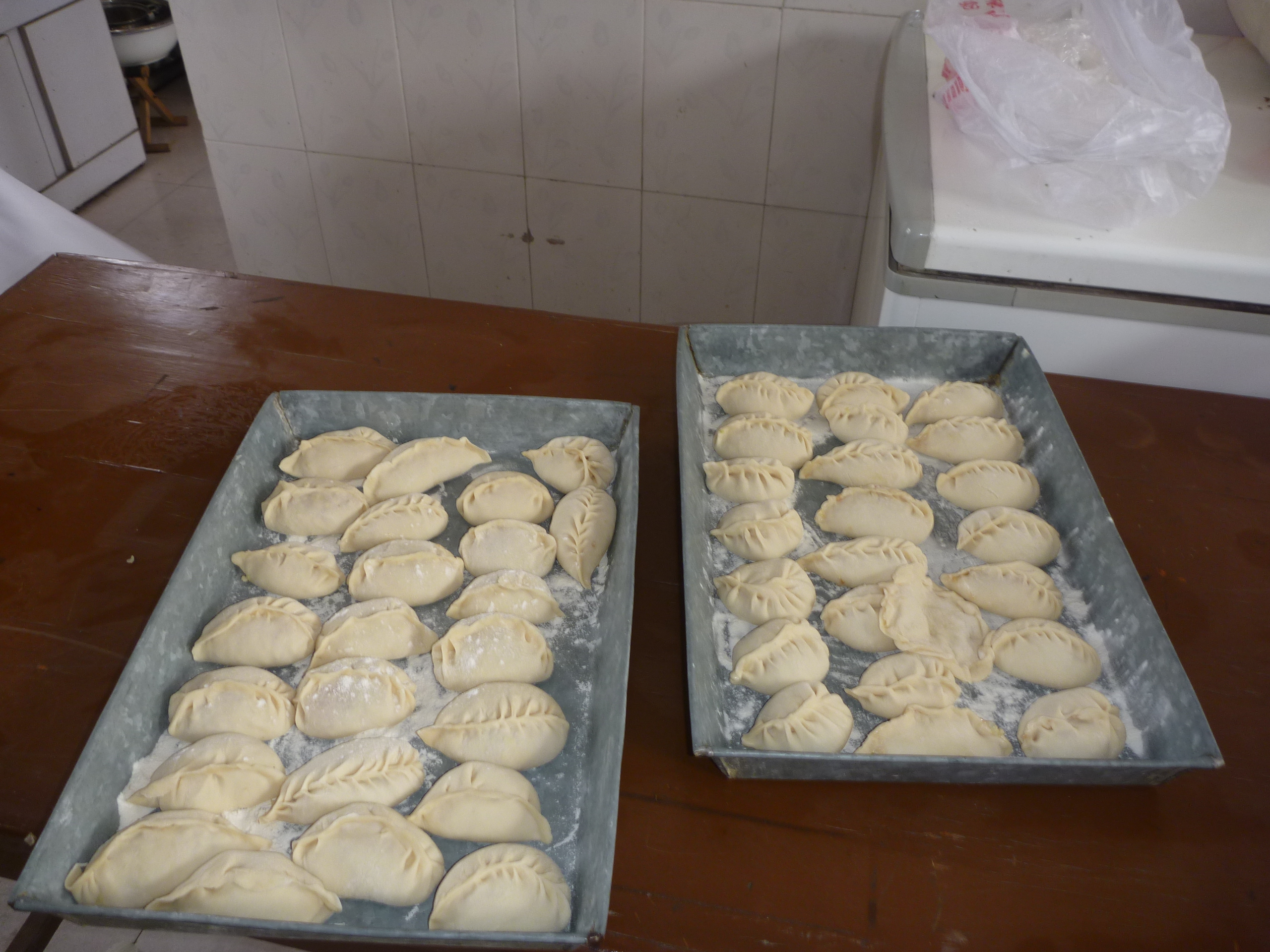包好的一盘盘饺子