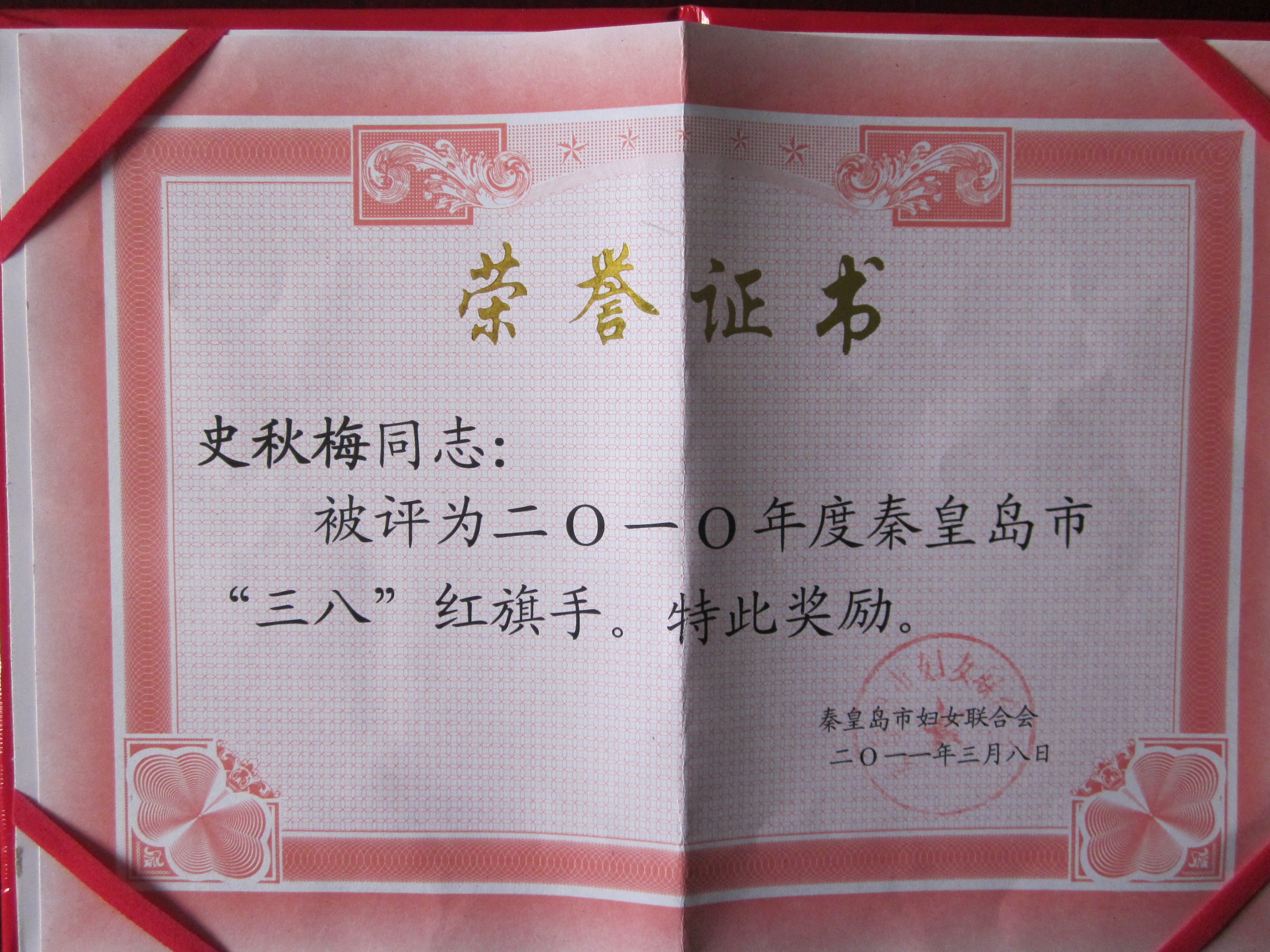 喜讯二:澳门网投官网史秋梅老师被评为“2010年度秦皇岛市三八红旗手”
