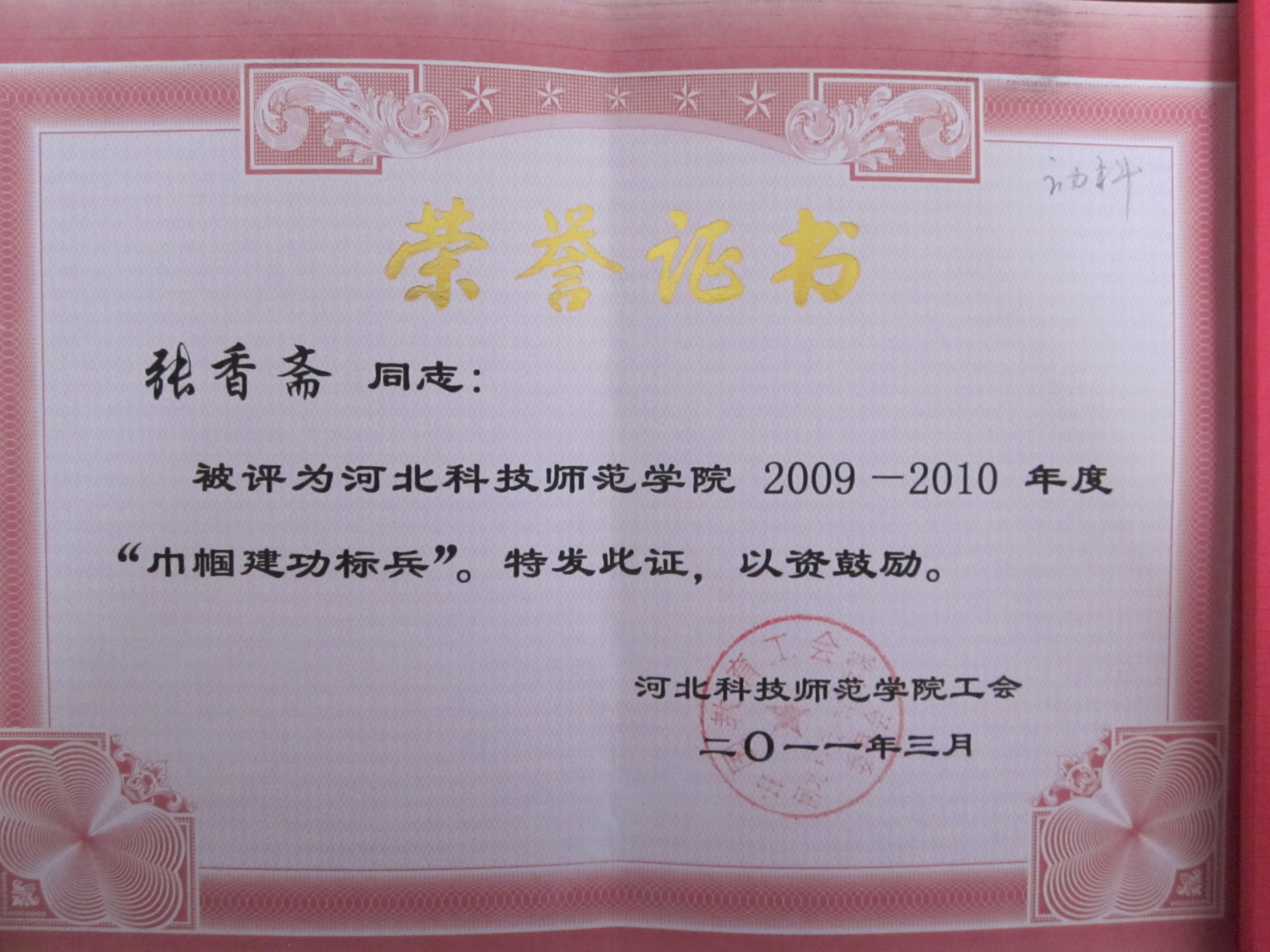 喜讯三:澳门网投官网张香斋老师被评为澳门网投十大信誉平台2009-2010年度“巾帼建功标兵”