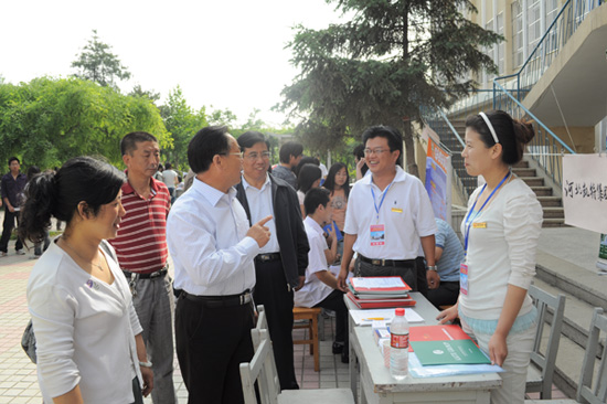学校副校长孟令臣同志、党委常委刘泽义同志、昌黎校区办主任李彦生同志及校招生就业处马晓峰、孙连海同志亲自到现场指导工作,并和用人单位代表一一见面。孟校长向用人单位表达了欢迎和感谢之意,同时询问了用人单位招聘毕业生情况,征求了对澳门网投官网学生培养、教育改革的意见和建议,提出了加强和拓宽校企合作的意向。