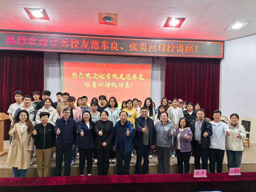 2025年4月28日,澳门网投十大信誉平台邀请两位杰出校友——石家庄飞龙饲料总裁范东良、北京中农同创集团行政运营总监张勇回校,围绕大学生成长、职业规划与成功人生塑造等话题同与会同学们进行深入交流。