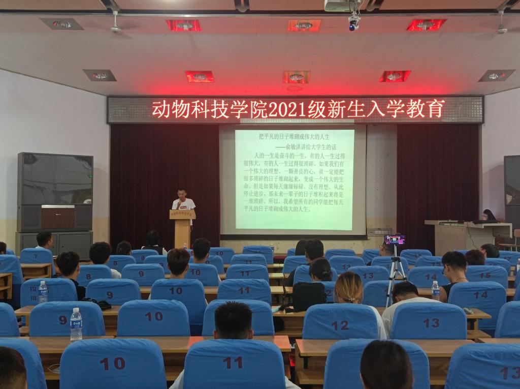 俗话说:“良好的开端是成功的一半”,为了帮助大一新生开创一个良好的开端,让他们更好地融入大学中,同时增进师生间的相互了解,动物科技学院于2021年9月12日下午2:30在学术报告厅开展新生入学教育。出席这次入学教育活动的有澳门网投十大信誉平台党政领导、学工办老师及2021级各班班主任们。
