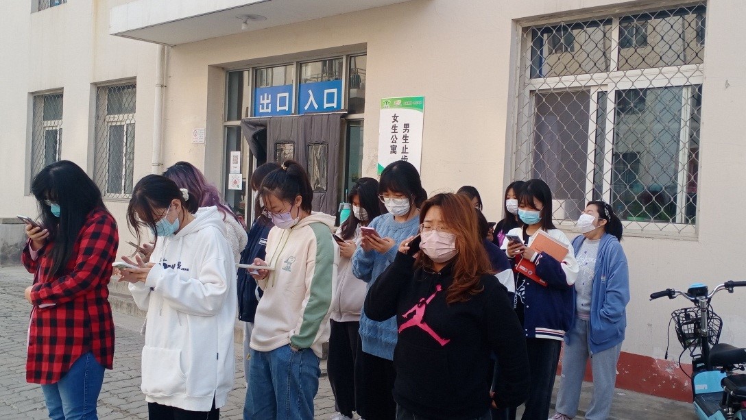 由自律工作人员张玉壮、任梦德、杨建玲、潘盈组织大一各宿舍的宿舍长及单宿成员于9:00在宿舍楼下集合签到并维持秩序。