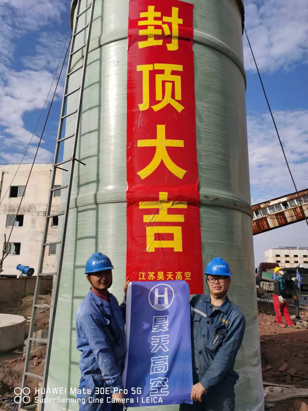 热烈祝贺江苏昊天承接的烟囱防腐玻璃钢总承包改造工程顺利完工